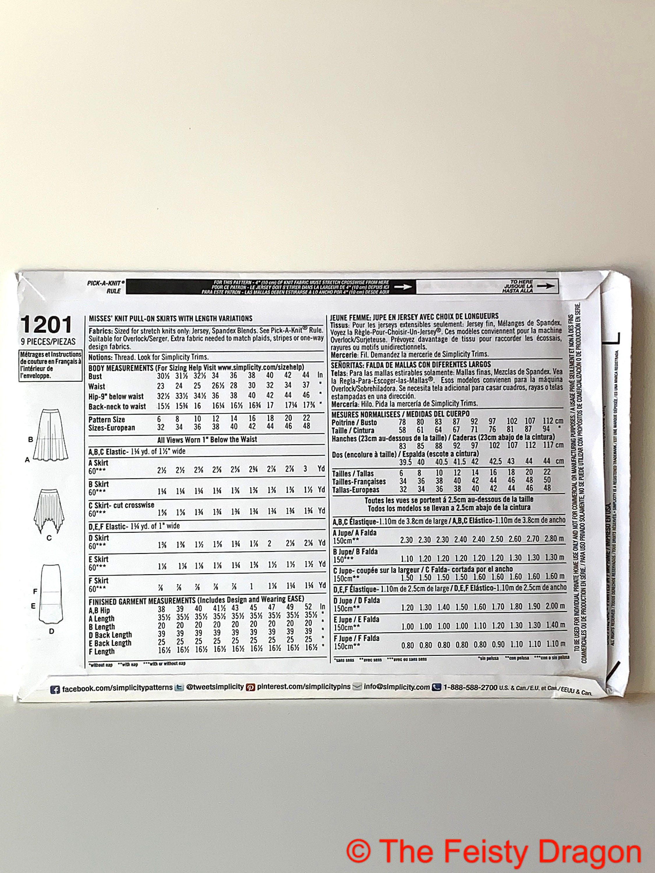Simplicity 1201 Misses Pull On Knit Skirts With Length Variations